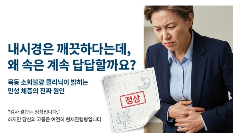 많은 분들이 ‘소화제 좀 먹으면 괜찮아지겠지’, ‘시간 지나면 내려가겠지’라고 생각하며 가볍게 넘기곤 합니다. 하지만, 검사상 이상이 없다고 해서 내 몸의 ‘기능’까지 괜찮다는 뜻은 결코 아닙니다.